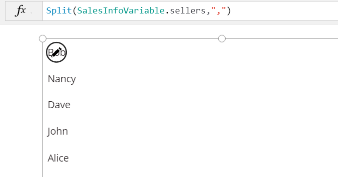 In the above example, you can see how the result of the flow is set in the SalesInfoVariable, and then the gallery is bound to the table output by splitting the names on a comma. If you have an array of objects in the flow, use the Select action first, to choose the property you want to pass to the PowerApp before joining the array.