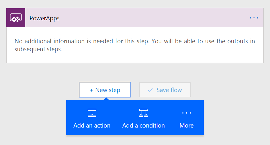 To set up a flow that calls data from PowerApps, first start your flow with the PowerApps trigger.