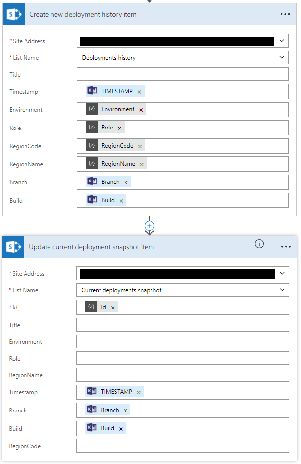 Using Microsoft Flow it was super easy to build a no code solution to both track deployment history and track the state of current deployments across regions.