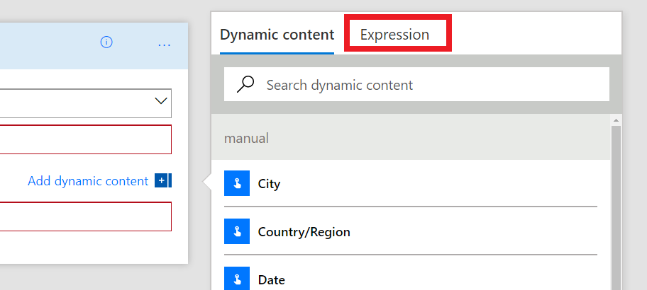 Flow has a rich set of actions, but sometimes users just need to do basic operations like getting the current time, adding numbers together, or replacing a part of a string of text. Starting today, that’s possible inline in any flow action. Microsoft Flow leverages the same Workflow Definition Language used by Azure Logic apps. For new users who are unfamiliar with the expression language, there is an inline help experience that shows how to use each expression as they build out their flow. To use an expression in your flow, first open the Add dynamic content menu.
