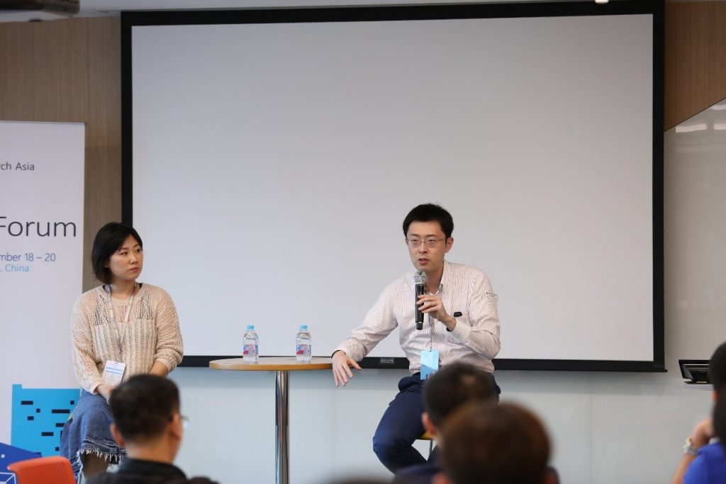 Dr. Ying Yan, lead researcher of Microsoft Research Asia (left), and professor Koji Yatani (right) from the University of Tokyo sharing their suggestions on career development.