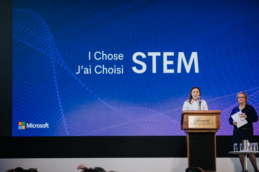 Canada’s Chief Science Advisor, Mona Nemer, I Chose STEM, Montreal, February 12, 2018In the afternoon, attendees were inspired by listening to the unique journeys in STEM taken by Layla El Asri from Microsoft Research Montreal, Adriana Romero from Facebook AI Research and Sara Sabour from Google Brain.