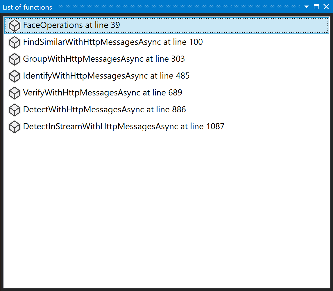 - Function list: Provides a navigable, accessible list of functions present in the current file.