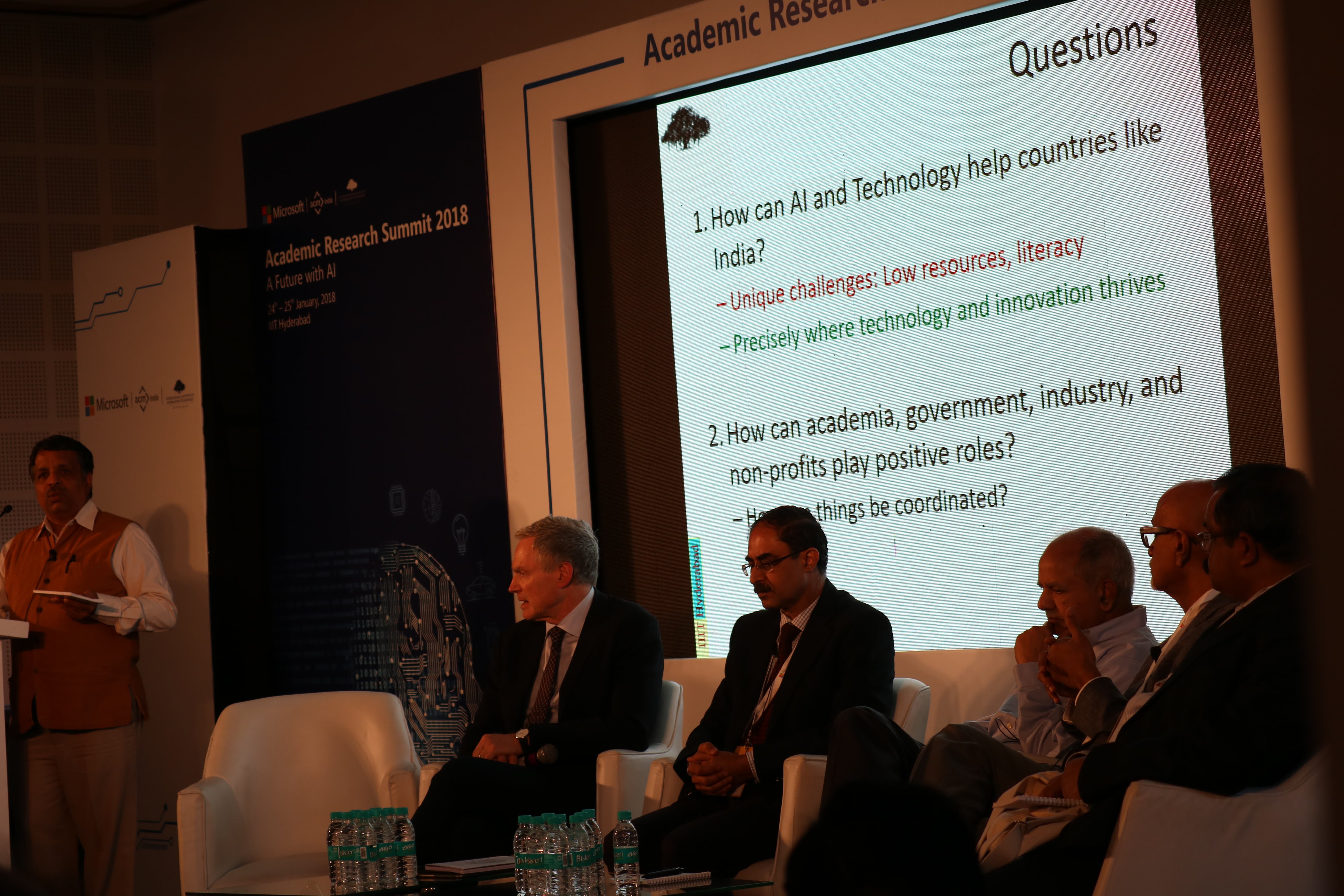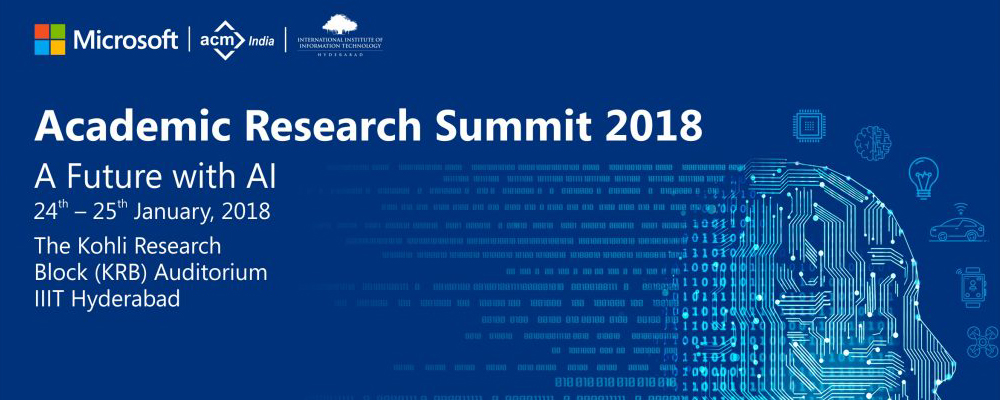 The Academic Research Summit provides the Indian research community with a common platform to come together and foster collaboration on cutting-edge research. Microsoft Research and the Association for Computing Machinery are co-organizing the summit in partnership with the International Institute of Information Technology Hyderabad. The theme of the event is Artificial Intelligence: A Future with AI.