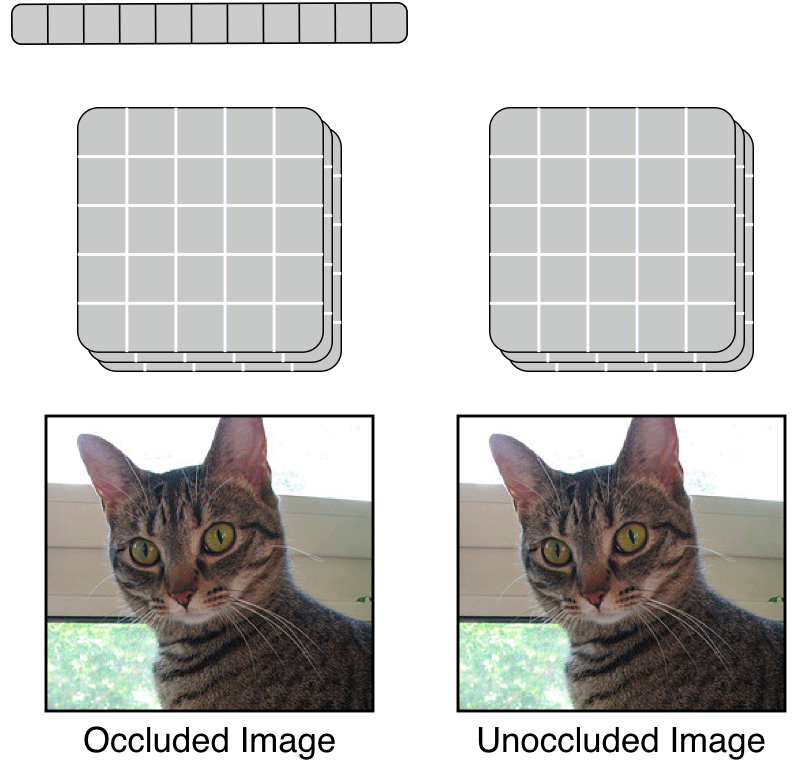 This can be done by computing the global vector with part of the input occluded. The local features are then computed using the complete original input. This is a type of orderless autoregression (opens in new tab) that allows us to make the task slightly harder for DIM and potentially improve results. Alternatively, we can perform mixed self-prediction and orderless autoregression by computing multiple global vectors using a simple convolutional layer on top of the local features.