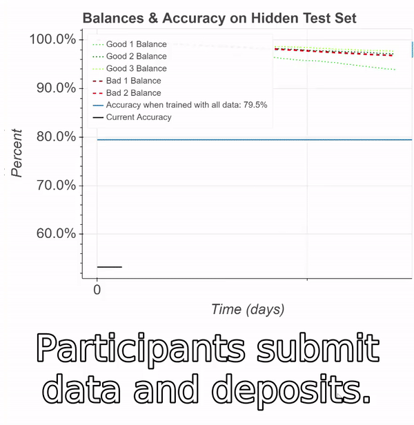 Participants are rewarded based on how much their contribution helped the model improve. If the model did worse on the test set, then participants who contributed “bad” data lose their deposit.