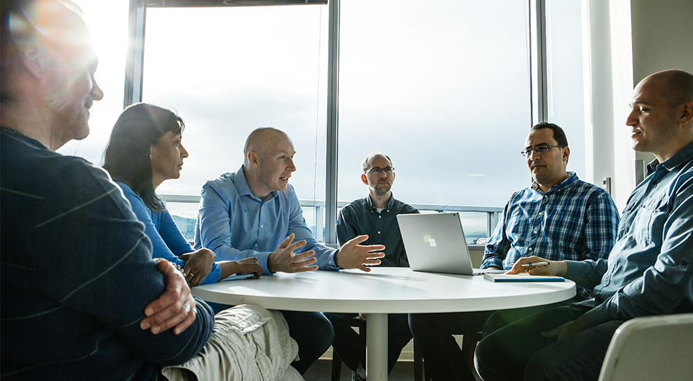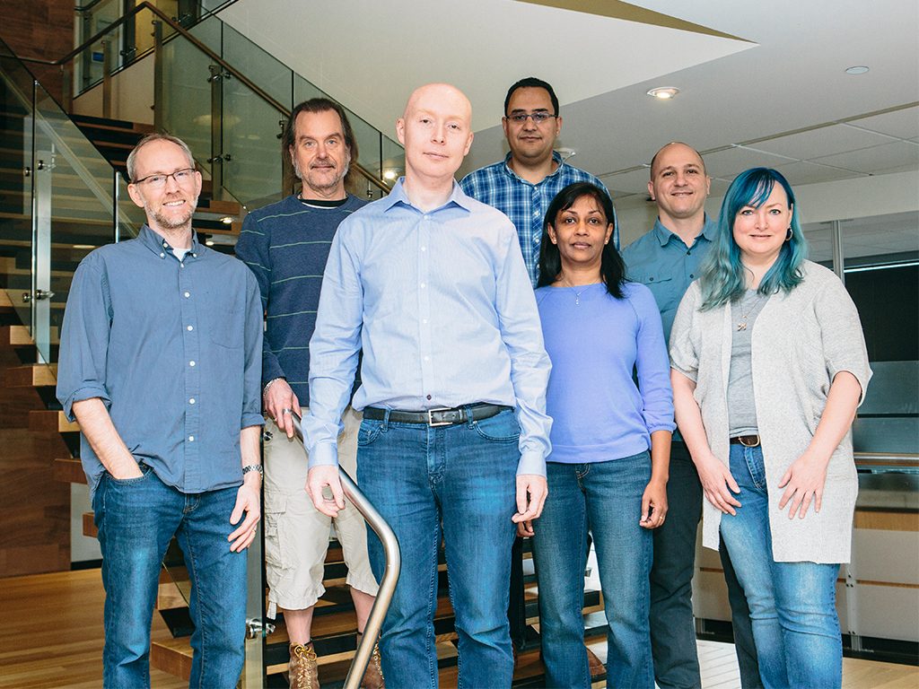 Microsoft Cortana team from left to right: Robert Sim, Allen Herring, Ryen White, Ahmed Hassan Awadallah, Nirupama Chandrasekaran, Paul Bennett, Vanessa Murdock
