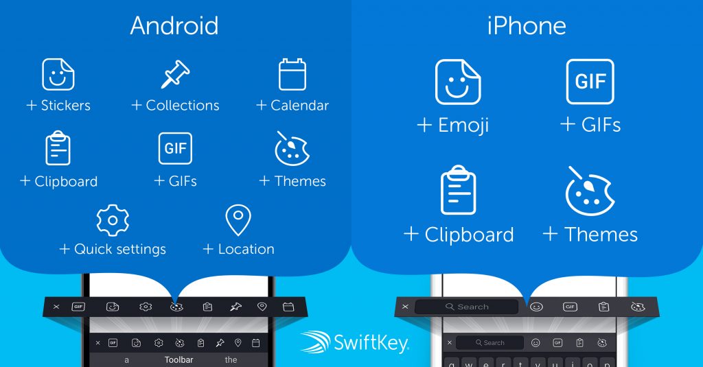 Last week’s rollout of SwiftKey 7.0 is the intelligent keyboard app’s biggest update since joining Microsoft in April 2016 (opens in new tab). Available on both Android (opens in new tab) and iOS (opens in new tab), SwiftKey 7.0 debuts Toolbar, an expandable menu found under a new ‘+’ sign on the left of your prediction bar that gives you fast and easy access to both new and existing features. For Android users, Toolbar will replace the existing Hub.