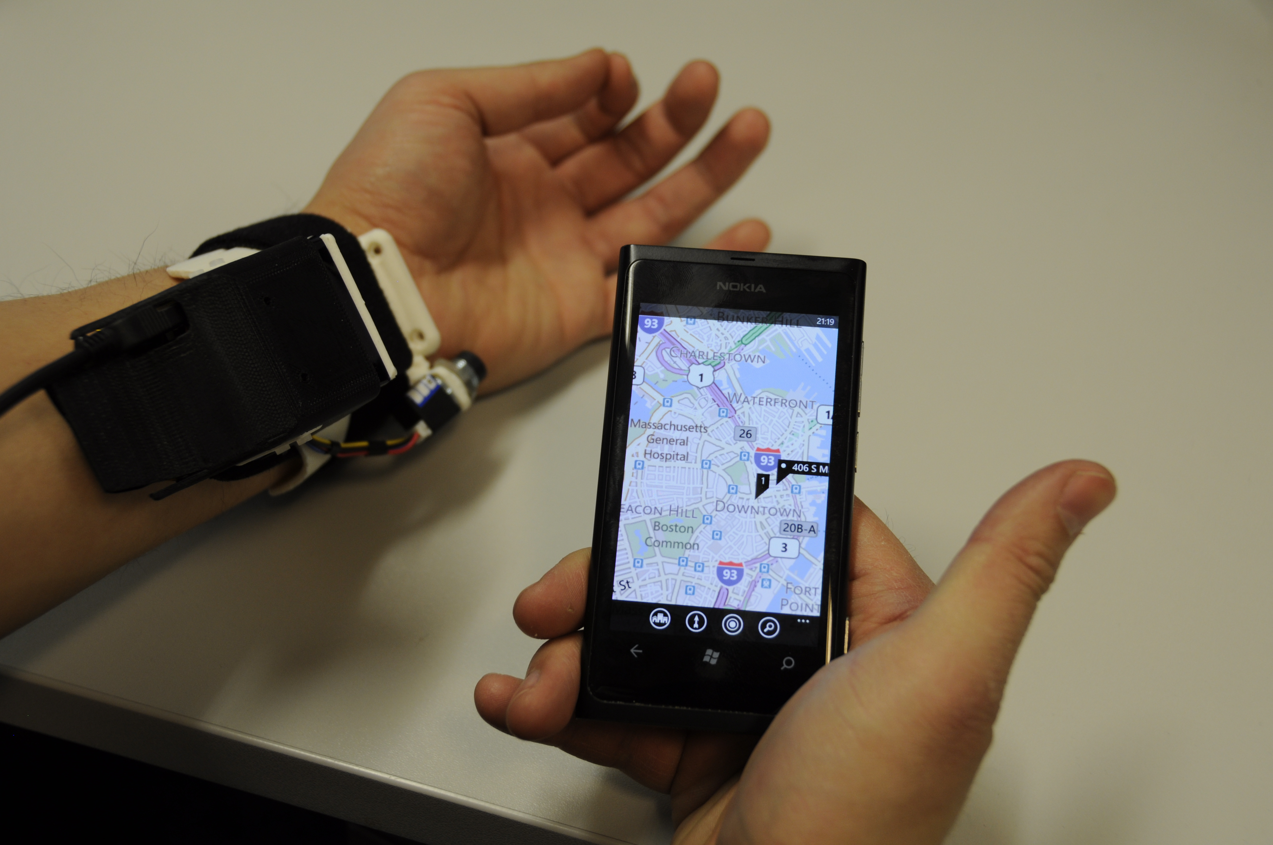 Digits is a wrist-worn sensor that recovers the full 3D pose of the user’s hand without requiring any external sensing infrastructure or covering the hand itself (unlike data gloves). The system targets mobile settings and is specifically designed to be low-power and easily reproducible using only off-the-shelf hardware. We demonstrate the utility of Digits for a variety of application scenarios, including 3D gaming and eyes-free interaction on the move.