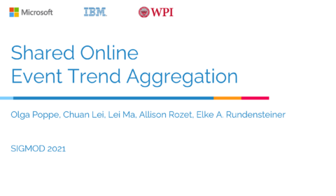 To Share, or not to Share Online Event Trend Aggregation Over Bursty Event Streams, SIGMOD 2021, 20 mins