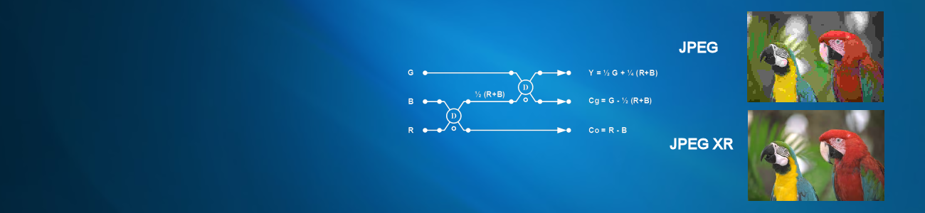 The still image compression format now known as JPEG XR (opens in new tab) has its roots at Microsoft Research. It started as the Progressive Transform Codec (PTC), which we designed back in 1999 as an alternative to JPEG 2000 (opens in new tab). The goal for PTC was to achieve a compression performance similar to that of JPEG 2000, but with a much lower (by ~ 3x) computational complexity, less than 2x that of the original low-complexity JPEG (opens in new tab)format. PTC was also designed with two new features that distinguished it from JPEG and JPEG 2000: