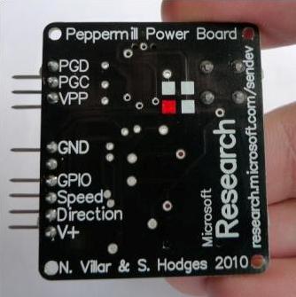 The front-end electronic system, which generates power and provides signals relating to the direction and speed of rotation of the device, is available as a separate circuit – the Peppermill Power Board. This is very easily powered by a wide variety of motors and geartrains – even old cordless drills. With a user-selectable output voltage it can be used to power a range of embedded electronic solutions, including Arduino, making it easy for others to explore user-powered electronic devices.