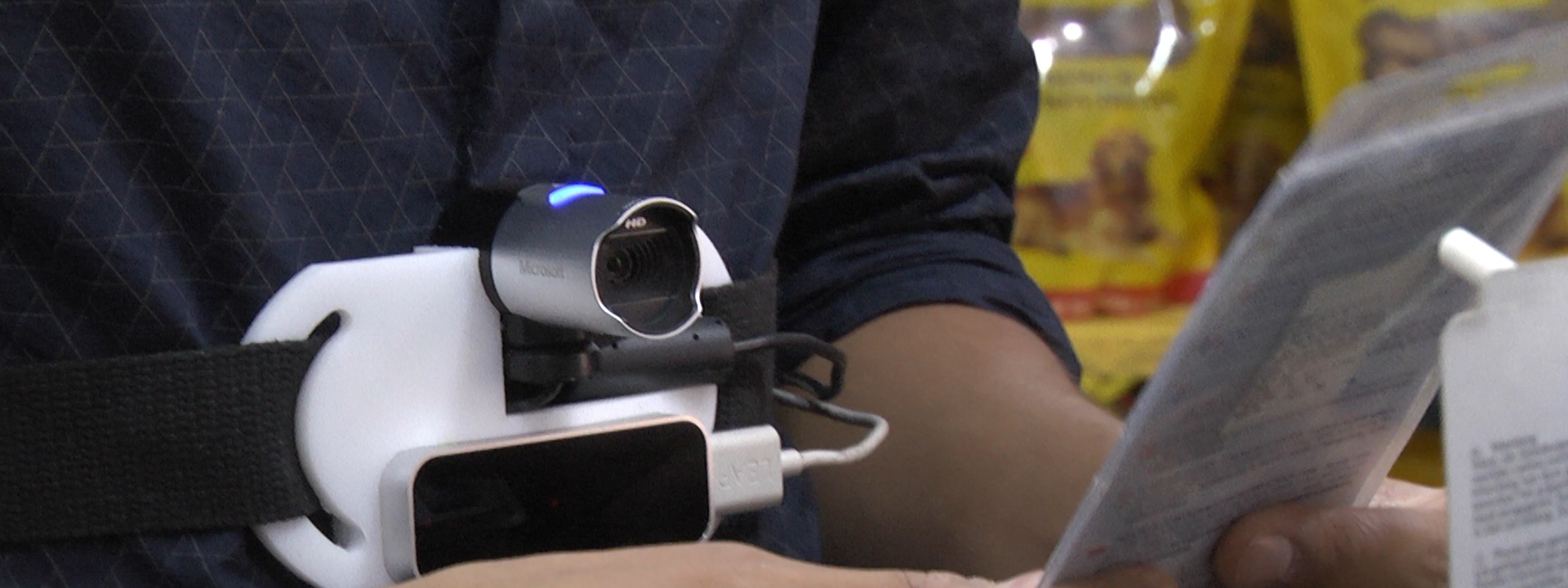 FReAD (Feature Reading Accessibility Device) is a “smart belt” for VIPs that enhances the tactile exploration of an object with voiced descriptions. It was designed as an effort to apply modern computer vision to the common problem of exploring everyday objects. The belt contains an embedded camera that senses grasps, then subsequently analyzes text and objects for the user.
