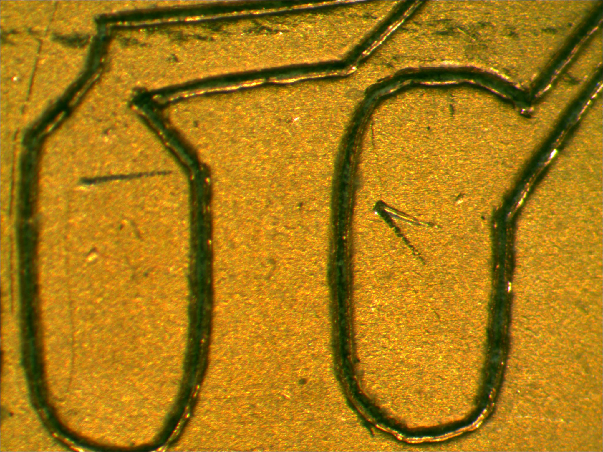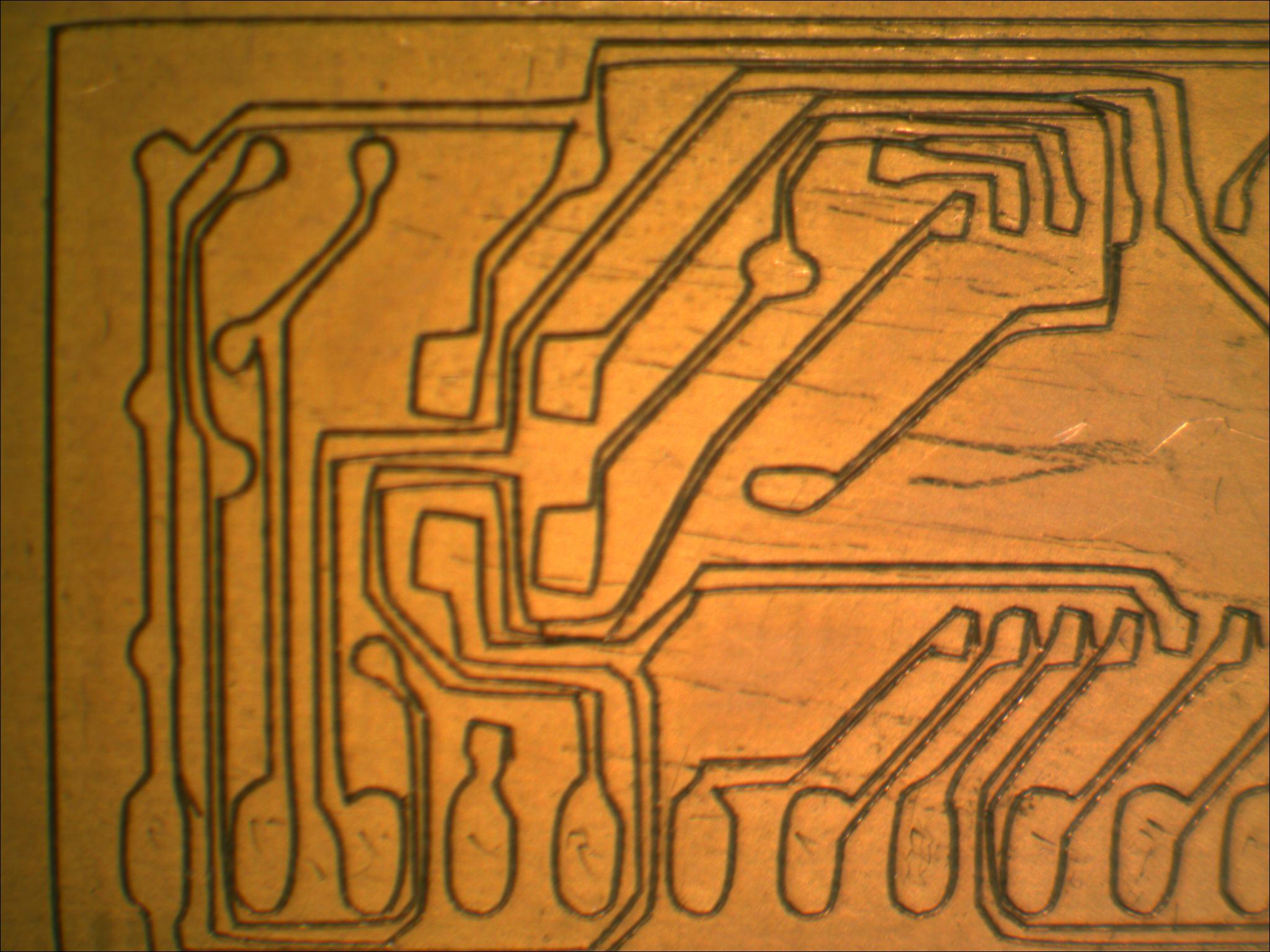 This takes about 2.5 minutes for my simple layout in the poster. It’s advisable to look at the cuts with a loupe or microscope and remove any copper “hairs” or obvious shorts or correct the problem areas. Use an ohmmeter to make sure all traces are good and there are no shorts.