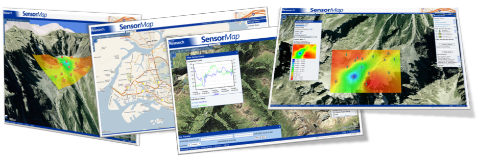 Description: This video demonstrates how SensorMap simplifies the temporal and spatial exploration of sensory data, using the Genepi deployment site of the Swiss Experiment (opens in new tab) project as a concrete example. First, SensorMap allows users to access the most recent readings of a weather station by a popup panel. Second, SensorMap enables exploration of historic data via time series charts. A comparison chart visualizes data for multiple sensors in one chart for direct comparison and correlation. Third, SensorMap can create contour maps for any selected sensor types in view, visualizing the spatial distribution of the sensory data. A time traveler panel allows users to go to any time point and see the spatial distribution of a particular time point. Fourth, SensorMap supports replay of contour maps over time to investigate the evolvement of an interested environmental metric over time and space. Finally, 3D support of Virtual earth allows users to see the sensor layout as well as the contour maps over 3D terrain, clearly presenting the interactions among them.