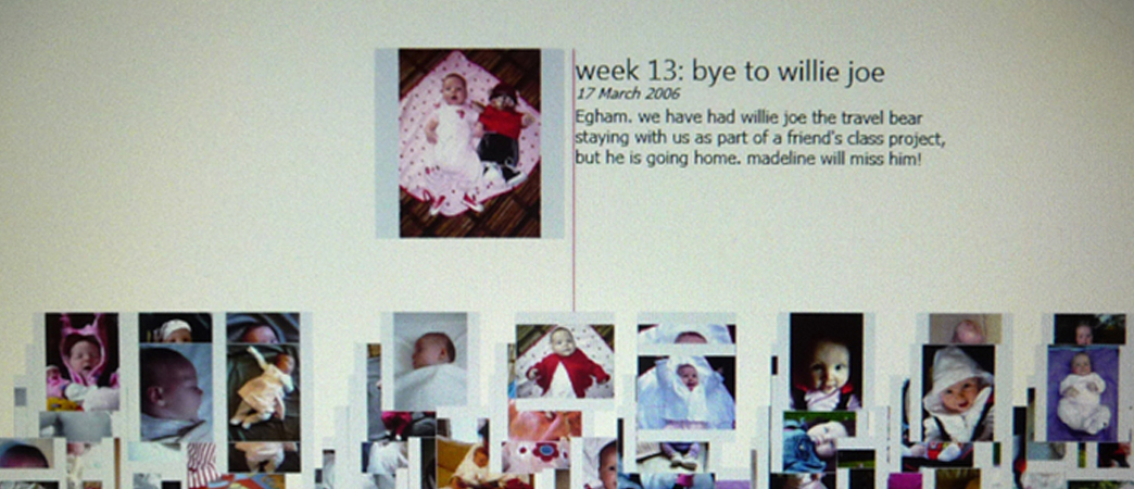 While we tend to think of most digital things as only having a shelf life of a few years, the reality is that we’re now taking digital photos, and keeping digital items, for long enough that we have to start thinking about the consequences of using them for reminiscing in the future and passing them on to our offspring. This project explored what it might mean to inherit someone else’s digital as well as physical belongings and it asked how we might use digital technology to reflect on our own lives.