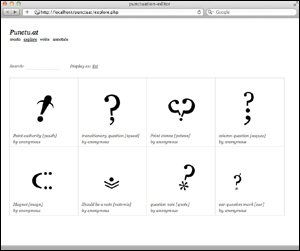 Punctu.at (opens in new tab) is a tool to create, combine and share new punctuation marks and symbols. Using existing typographic shapes, this project explores how personal symbols can enrich and modify the meaning of a text.