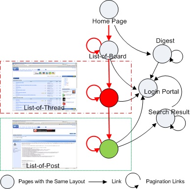 In this project, we take web forum crawling as an example to show how such site-level structure information is useful. A framework was proposed in [1] to fetch a forum more efficiently and effectively. Around 50% bandwidth can be saved by only downloading list-of-thread and list-of-post pages and discarding valueless supplementary pages. The crawling traversal strategy was further improved in [2] to increase the performance. Targeted on incremental crawling, a list-wise strategy was developed in [3] to fetch newly published posts in the first time.