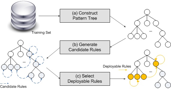 Duplicate URLs have brought a series of troubles to a search engine. URL normalization is to rewrite a set of duplicate URLs to a canonical form. In this project, a pattern tree-based approach was proposed in [9] to automatically generate rewrite rules. Instead of previous research efforts working on individual duplicate pairs, pattern tree provides statistical information of all duplicate pairs in a website. In this way, we can accelerate the learning process and generate more reliable rewrite rules. Fig. 8 shows the flowchart of this approach.