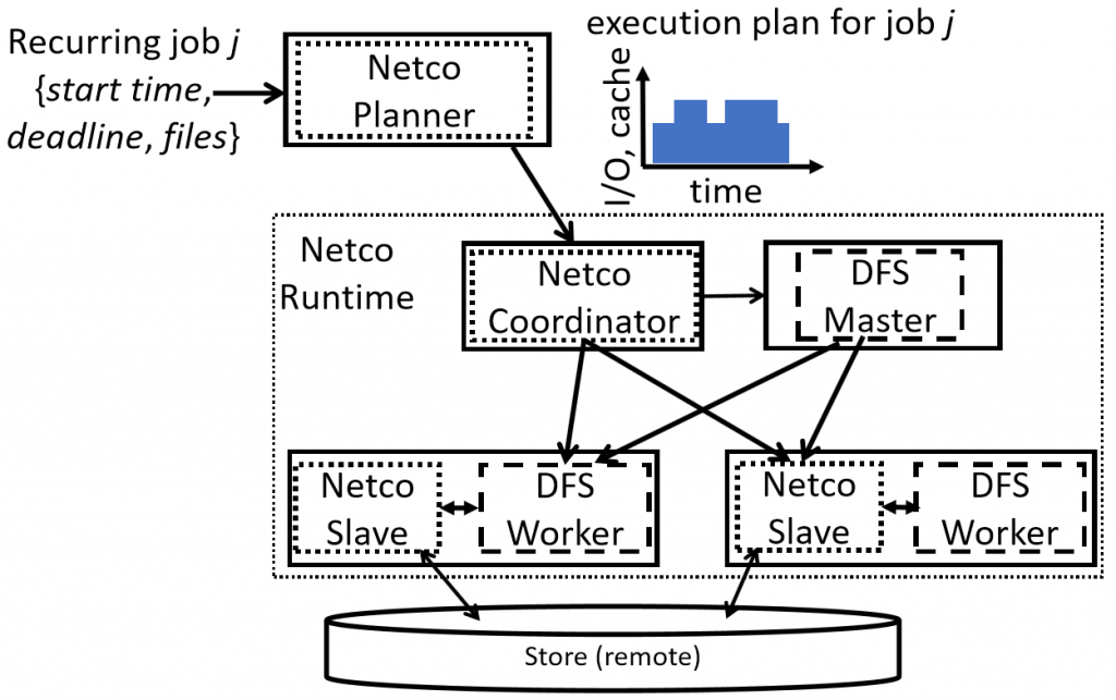 We consider a common setting where storage is disaggregated from the compute in data-parallel systems. Colocating caching tiers with the compute machines can reduce load on the interconnect but doing so leads to new resource management challenges. We design a system, Netco, which prefetches data into the cache (based on workload predictability), and appropriately divides the storage and network bandwidth between the prefetches and serving ongoing jobs. Netco makes various decisions (what content to cache, when to cache and how to apportion bandwidth) to support end-to-end optimization goals such as maximizing the number of jobs that meet their service-level objectives (e.g., deadlines). Our implementation of these ideas is available within the open-source Apache HDFS project. Experiments on a public cloud, with production-trace inspired workloads, show that Netco uses up to 5x less remote I/O compared to existing techniques and increases the number of jobs that meet their deadlines up to 80%.