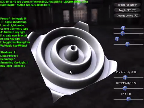 We present a new, real-time method for rendering soft shadows from large light sources or lighting environments on dynamic height fields. The method first computes a horizon map for a set of azimuthal directions. To…