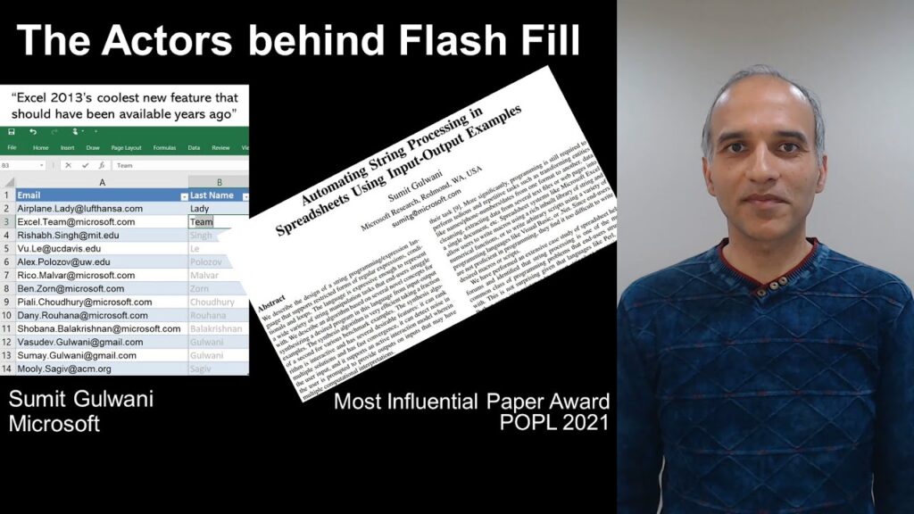 On the occasion of receiving the most influential test-of-time paper award for his POPL 2011 paper (which describes the technology behind the popular Flash Fill feature in Excel), Sumit shares stories related to his inspiration…