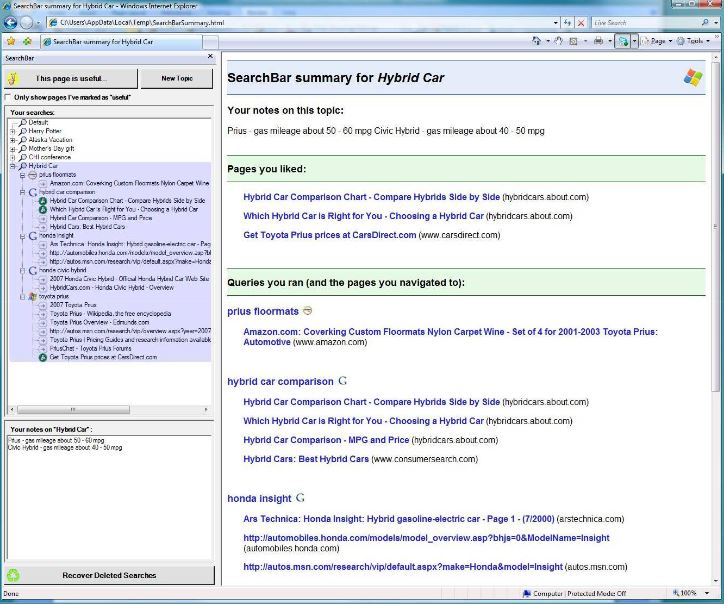 Current user interfaces for Web search, including browsers and search engine sites, typically treat search as a transient activity. However, people often conduct complex, multi-query investigations that may span long durations and may be interrupted…