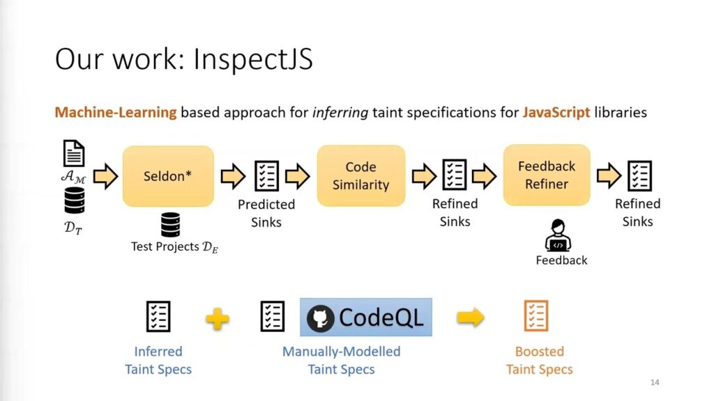 ICSE SEIP 2022 Talk InspectJS: Leveraging Code Similarity and User-Feedback for Effective Taint Specification Inference for JavaScript Paper link: https://arxiv.org/pdf/2111.09625.pdf