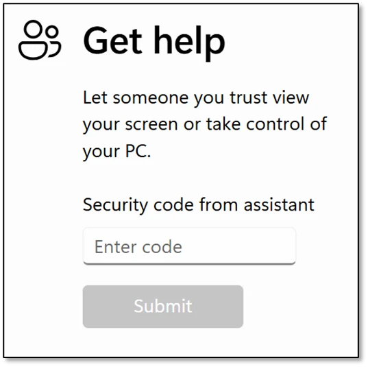From the user’s perspective, the attacker convinces them to open Quick Assist, enter a short key, the follow all prompts and approvals to grant access.
