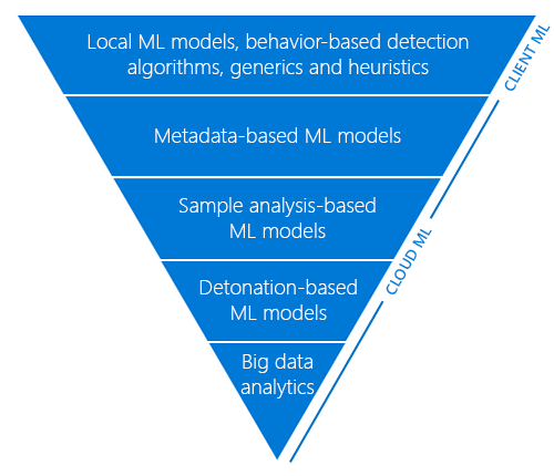Windows Defender Antivirus uses a layered approach to protection: tiers of advanced automation and machine learning models evaluate files in order to reach a verdict on suspected malware. -