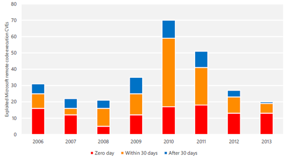 One of the questions I get asked from time to time is about the days of risk between the time that a vulnerability is disclosed and when we first see active exploitation of it; i.
