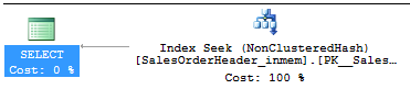 SQL Server will use the hash index on the column SalesOrderID to quickly identify the row corresponding to the parameter @ID. Witness the Index Seek operation in the query plan: