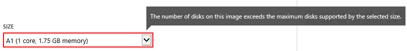 Currently we support these images on VM instances that allow up to 16 data disks attached to provide the highest throughput (or aggregate bandwidth). Specifically, these instances are Standard Tier A4, A7, A8 and A9 and Basic tier A4. Please refer to Virtual Machine and Cloud Service Sizes for Azure for further details on the sizes and options.