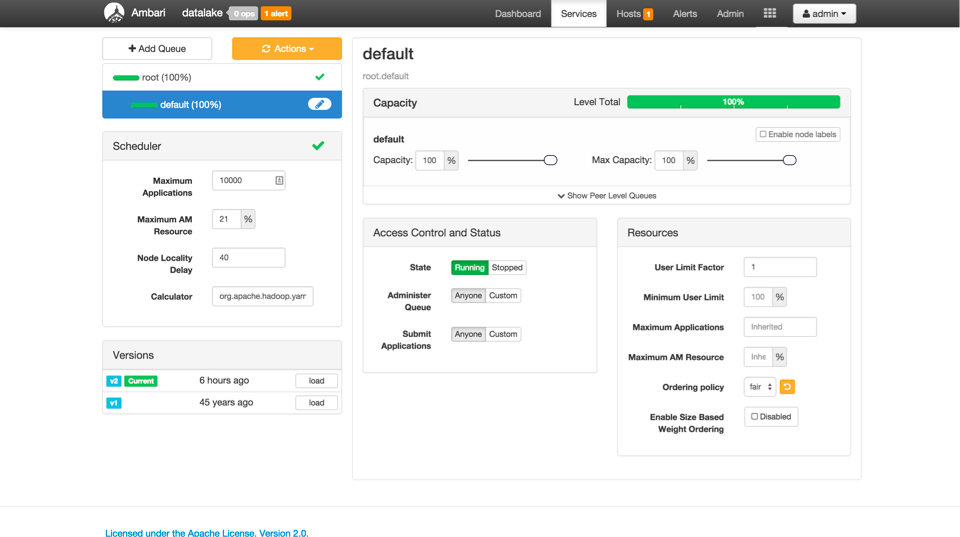 The YARN Capacity Scheduler provides workload management across application types and tenants in a shared HDP cluster. HDP 2.3 delivers a new experience to configuring workload management policies.