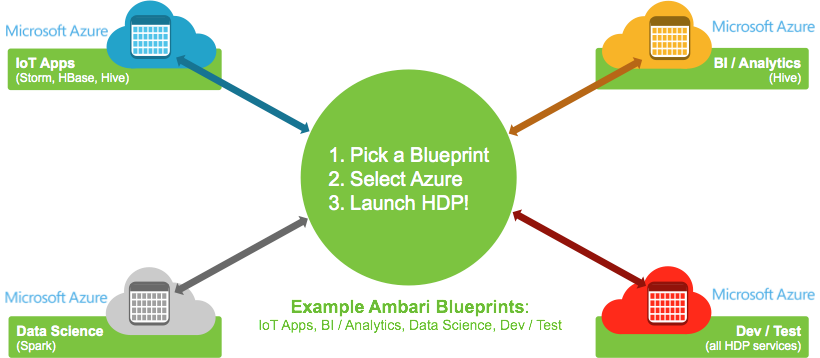 With Cloudbreak, operators will be able to seamlessly deploy elastic HDP clusters to Azure IaaS virtual machines. HDP will efficiently utilize Azure resources, with policy-based autoscaling to expand and contract clusters based upon actual usage metrics.