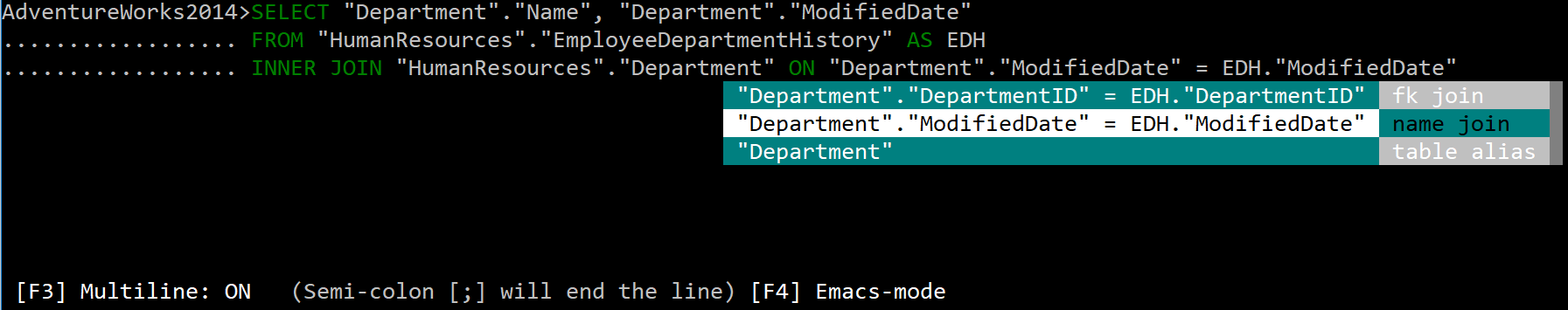 mssql-cli auto-completion that is context aware