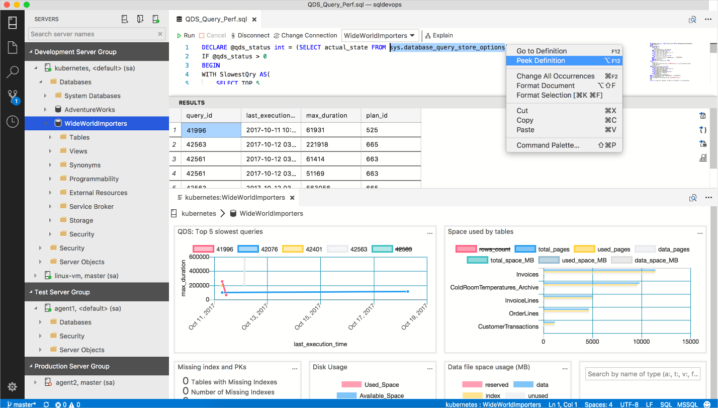 - Utilize our SQL Operations Studio Extensibility API to interact with other application parts such as Object Explorer