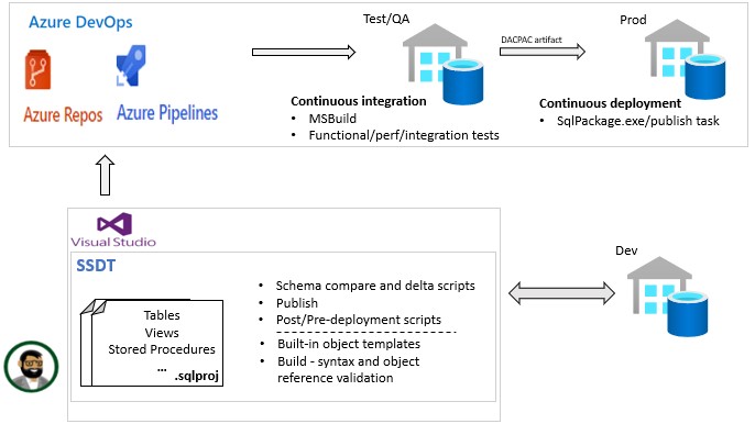 Data engineers and developers can easily integrate their SQL Server Data Tools database projects with Microsoft Azure Repos.