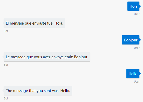 Stai cercando di aggiungere supporto multilingue al tuo bot? Utilizzando il Azure bot servizio V4 SDK, il bot può utilizzare Microsoft Translator per tradurre automaticamente i messaggi nella lingua che il bot capisce e facoltativamente tradurre le risposte del bot nella lingua dell'utente.