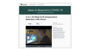 一つ目のプロジェクトとしてご紹介するのは台湾で10人のチームが病院に導入までおこなったプロジェクトです。このプロジェクトで実現したのは感染リスクのある人を病院の入り口で自動的に検知するソリューションです。検知にはAIモデルが活用され、顔の検知、マスクを有無、体温の情報を Azure上に送り、病院スタッフの利用するパソコン、スマート機器へリアルタイムに入館者の情報を送信します。導入により入館へのプロセスが自動化され、長蛇の列が解消されると同時に医療従事者の業務負荷の軽減につながりました。技術の知見のある方ならとてもシンプルで目新しい技術ではないと思われると思います。しかしシンプルだからこそ、すぐに導入し、確実に効果が上がるとも言えるのです。病院に殺到する潜在患者を滞留させないで三密を避けることを人員を使わず実現出来、その効果は絶大です。やり方よりも効果に着眼した好例と言えます。またアイディアがクラウドサービスと融合した事でどこでも、どんな規模にも短期に導入できることが出来ます。将来的にはあらゆる施設で利用されるかもしれません。