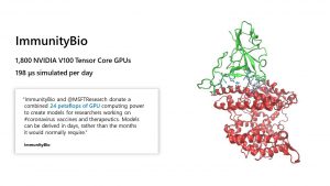 マイクロソフトから1800 NVIDIA V100 Tensor Core GPUを提供し、24ペタフロップの処理能力を実現したことで198μ秒分のモデルシュミレーションが1日で完了し、既存資源では3年半かかる工程が約2か月に短縮されています。