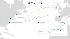 陸の上と異なり、海底ケーブルのネットワーク経路オプションはかなり限定されています。最も有名な大陸間海底ケーブルの一つであるMareaは米国と欧州のロックダウン後に急激な通信量増加を受けました。安定した通信を大陸間で維持するには別の海底ケーブルであるAECの増強が急務となりました。当時AECは稼働していませんでした。そこで急遽、別地域で導入準備中だったDWDM(高密度波長分割多重 / Dense Wavelength Division Multiplexing)機器を持ってきてAECの両終端に導入設置し稼働を開始しました。多くの人々の力のおかげで僅か6週間で稼働まで漕ぎつけることができました。(DWDMは単一の物理光ファイバー線に16波以上の波長の異なる光信号を多重で伝送し、複数回線を物理的に束ねたのと同様な通信量を実現する通信方式です。)