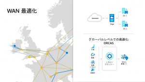 Azure内部ネットワークにはORCASという需要予測、実際に帯域量、無数にある利用可能な物理トポロジ(経路)、障害影響、通信の変動状況を計算して動的に通信経路の割り振りするツールがあります。ネットワーク経路は通常Shortest Path(最も早い+ホップ数が少ない+etc=ネットワークの観点から低コスト)を選択するように自動ルーティングする設計になっています。しかしながら通信量が大幅増加、集中するとせっかくある他の経路が利用されないまま、限られた経路に集中してしまう傾向が出てきてしまう場合があります。またそのほかにも障害や他の要因で通信が滞ると真経路の再計算に時間を要してしまう事もあります。ORCASは予測のプロセスを入れる事でプロアクティブに最適な通信経路を制御することで各経路の平準化と安定的に通信環境の維持を可能にしてくれます。