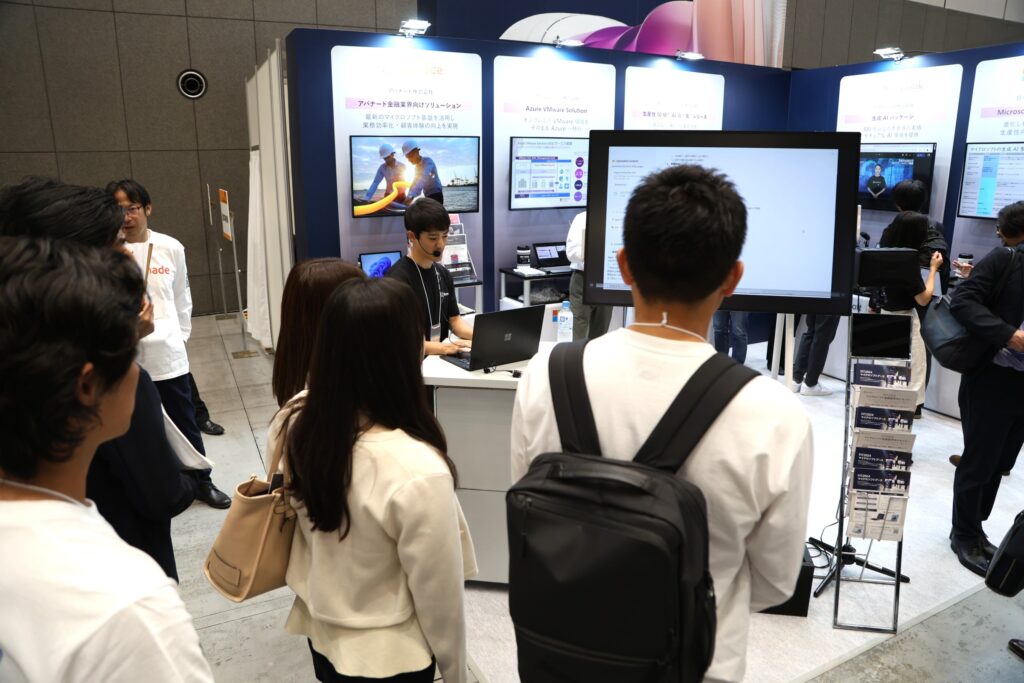 展示ブースでは、マイクロソフトやパートナー企業による自社ソリューションの紹介や各種デモンストレーションなどの実施、ミニステージでのプレゼンテーションなどを行った。