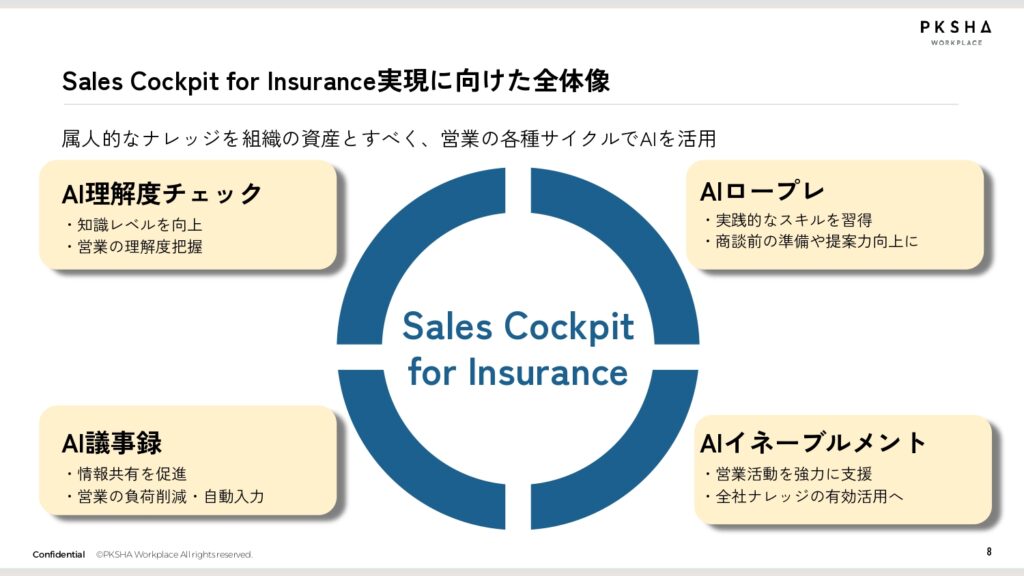 株式会社PKSHA Workplaceは、保険業界における営業活動の高度化を目指し、ナレッジを組織資産化する AI エージェントソリューションを 4 つ発表しました。同社は社内ナレッジが偏在し営業ノウハウが共有されにくいことが、保険営業を担当する組織の成長を阻害する原因になっていると分析しています。