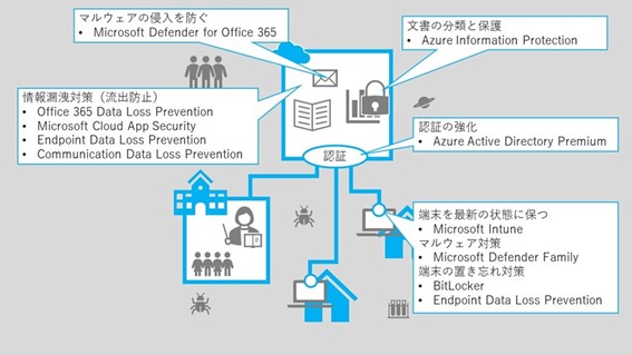 マイクロソフトではこのゼロトラストおよび情報漏洩対策を実現するサービスとして Microsoft 365 A5 を提供しています。