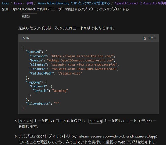OpenID Connect と Azure AD を使用してアプリケーションをセキュリティで保護する – Learn | Microsoft Docs こちらを利用すると、約 50 分でブラウザのみで Azure AD 対応アプリの開発、設定方法を学ぶことができますので、開発イメージをつかむためにもぜひお試しください。
