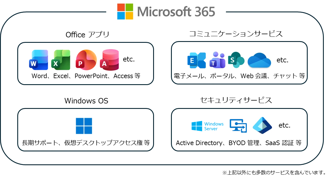 図:Microsoft 365 に含まれる主なサービス