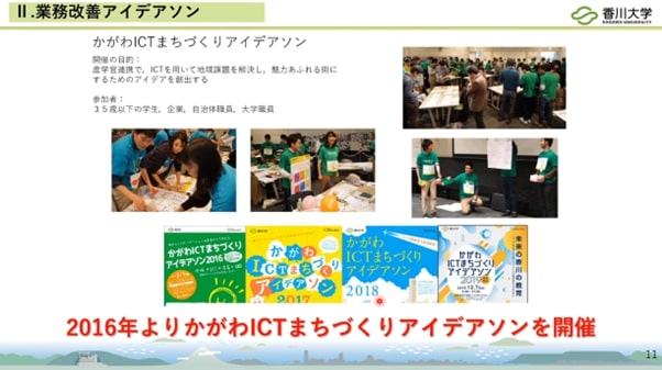 なお香川大学では、2016 年より産官学連携事業として「かがわ ICT まちづくりアイデアソン」を開催してきた実績があります。武田氏によればこのアイデアソンは、「ルールに従って滞りなく業務を遂行することを重視してきた大学職員にとって、ブレイクスルーとなるような気付きに満ちていた」と言います。同大学が迅速に体制整備へと舵を切れたのも、これまでに積み重ねてきた成功体験があったからこそと言えるかもしれません。