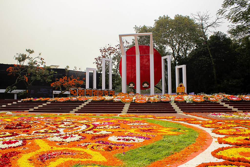 Monumento a Shaheed Minar, um símbolo do Dia Internacional da Língua Materna. Cortesia da imagem Wikimedia Commons.